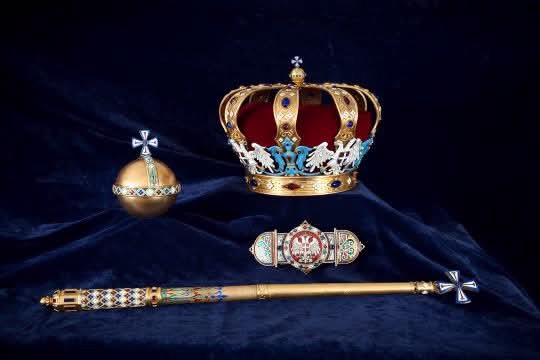 Reč je o jedinstvenom kompletu kraljevskih insignija ili regalija koji obuhvataju krunu, žezlo, šar, porfir, odnosno ogrtač i kopču za ogrtač.