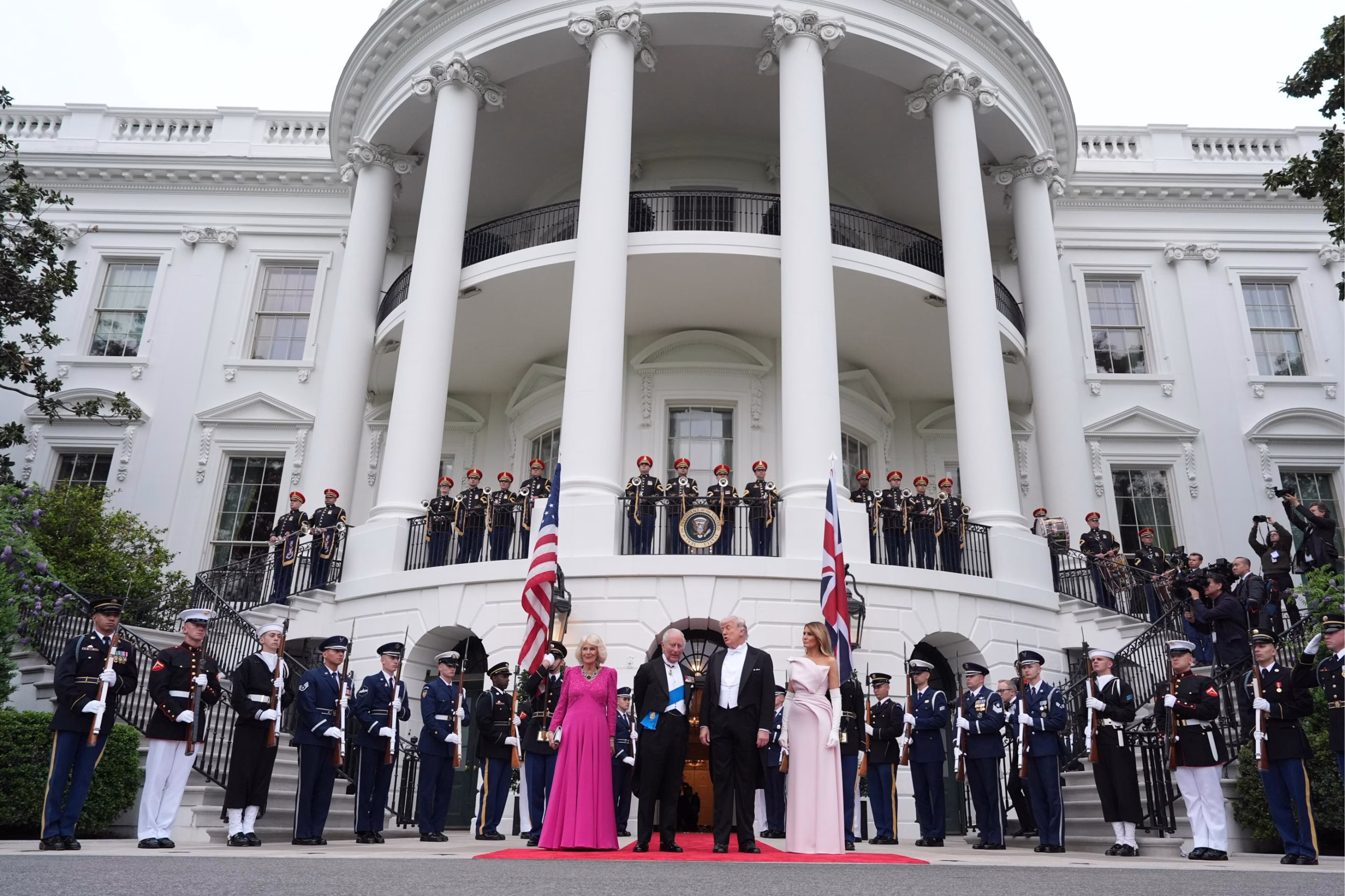 VAŠINGTON – Predsednik Sjedinjenih Američkih Država Donald Tramp i prva dama Melanija Tramp bili su domaćini svečane državne večere priređene u čast britanskog kralja Čarlsa III i kraljice Kamile. Zvanični susret ovekovečen je zajedničkom fotografijom na Velikom stepeništu u Velikom foajeu Bele kuće u utorak, 28. aprila 2026. godine, u atmosferi koja je odisala visokim protokolom i glamurom.