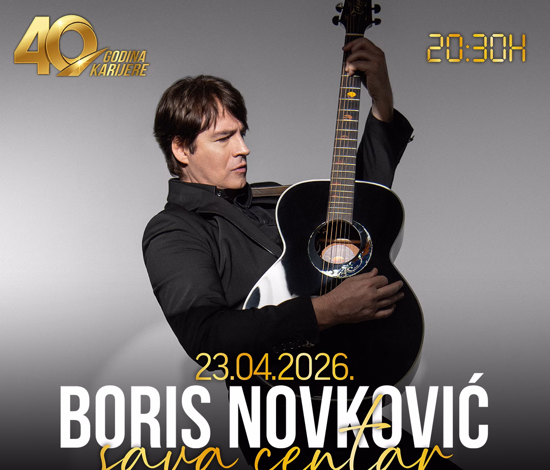 BEOGRAD – Jedan od najprepoznatljivijih vokala regionalne pop scene, Boris Novković, obeležiće impresivnih 40 godina uspešne karijere velikim solističkim koncertom u Beogradu. Ovaj muzički spektakl zakazan je za četvrtak, 23. april 2026. godine, u prestižnoj dvorani Sava Centar.
