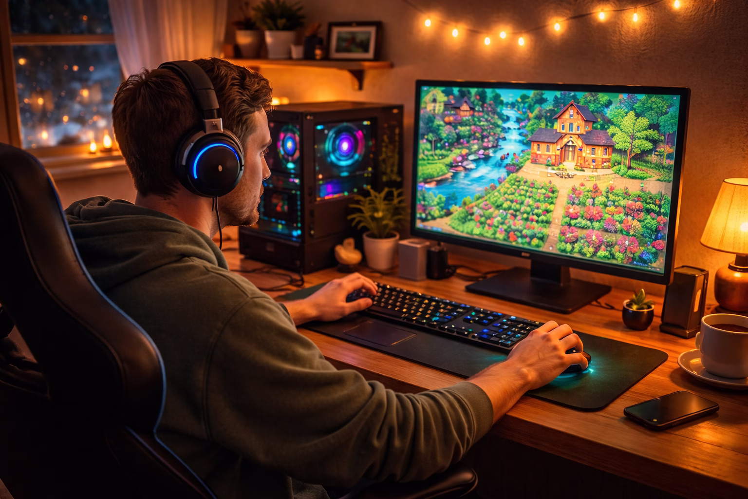 Dok su velike igre sve glasnije i brže, paralelno raste potpuno suprotan talas: cozy gaming. To su igre koje ne traže reflekse, ne mere poene i ne kažnjavaju greške, već nude miran ritam i osećaj prisutnosti. Poslednjih nedelja posebnu pažnju privukla je najava cozy igre u kojoj virtuelna mačka sedi pored tebe i “kuca” dok ti radiš ili se opuštaš. Igra ne forsira zadatke – mačka reaguje na tempo, protegne se, pređe preko tastature ili jednostavno zaspi, stvarajući digitalni ambijent koji više liči na tihu sobu nego na klasičnu igricu.