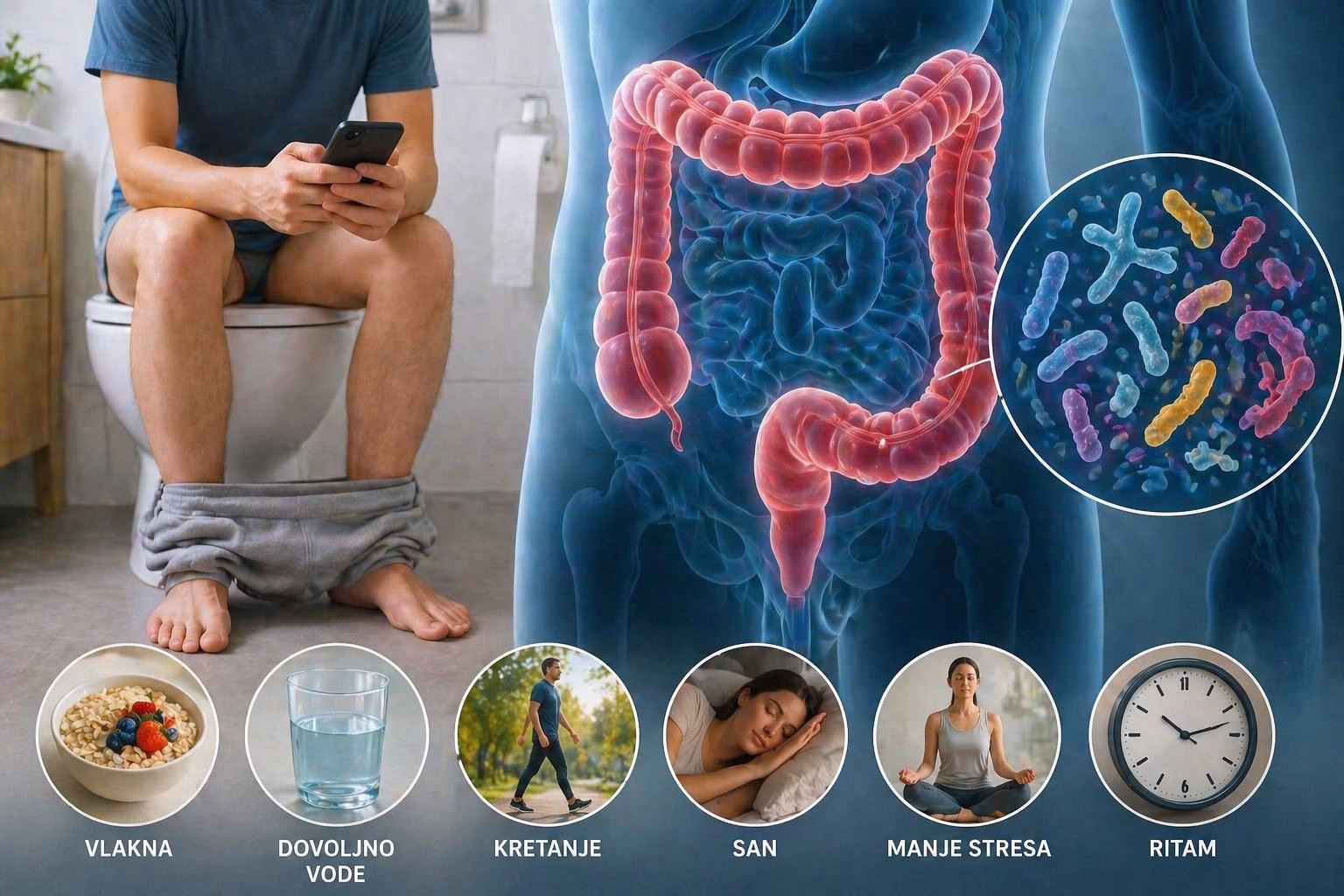 Za običnog čitaoca ova vest ima praktičnu vrednost. Nije poziv na opsesivno praćenje tela, već na malo više pažnje prema signalima koje telo već šalje. Ako se ritam naglo promeni, ako tegobe traju, ako se javljaju bol, krv, neobjašnjiv gubitak težine ili dugotrajni problemi, to je razlog za razgovor sa lekarom. Ali ako govorimo o svakodnevici, poruka je jednostavnija: creva vole red, dovoljno vode, hranu koja ima vlakna i život koji nije potpuno zakočen.