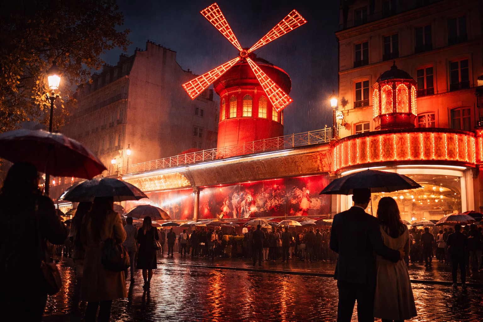 U 21. veku, slavu je dodatno „izvozio“ i film: Baz Lurman je 2001. snimio mjuzikl „Moulin Rouge!“, pa je crvena vetrenjača dobila novu generaciju obožavalaca. A onda je Pariz dobio i jednu neplaniranu, skoro neverovatnu vest: u noći 25. aprila 2024. oko 2.00, krila vetrenjače su se srušila — srećom bez povređenih, jer je program već bio završen. Incident je bio toliko simboličan da su mediji pisali kako je natpis nakratko ostao „okrnjen“, ali je poruka uprave bila jasna: predstave se nastavljaju, a ikona će biti vraćena. I zaista, nemački Dojče vele beleži da su krila ponovo „oživela“ i počela da se okreću 11. jula 2025., uz ulični kankan i vatromet, kao mali parisko-teatarski odgovor na kvar.