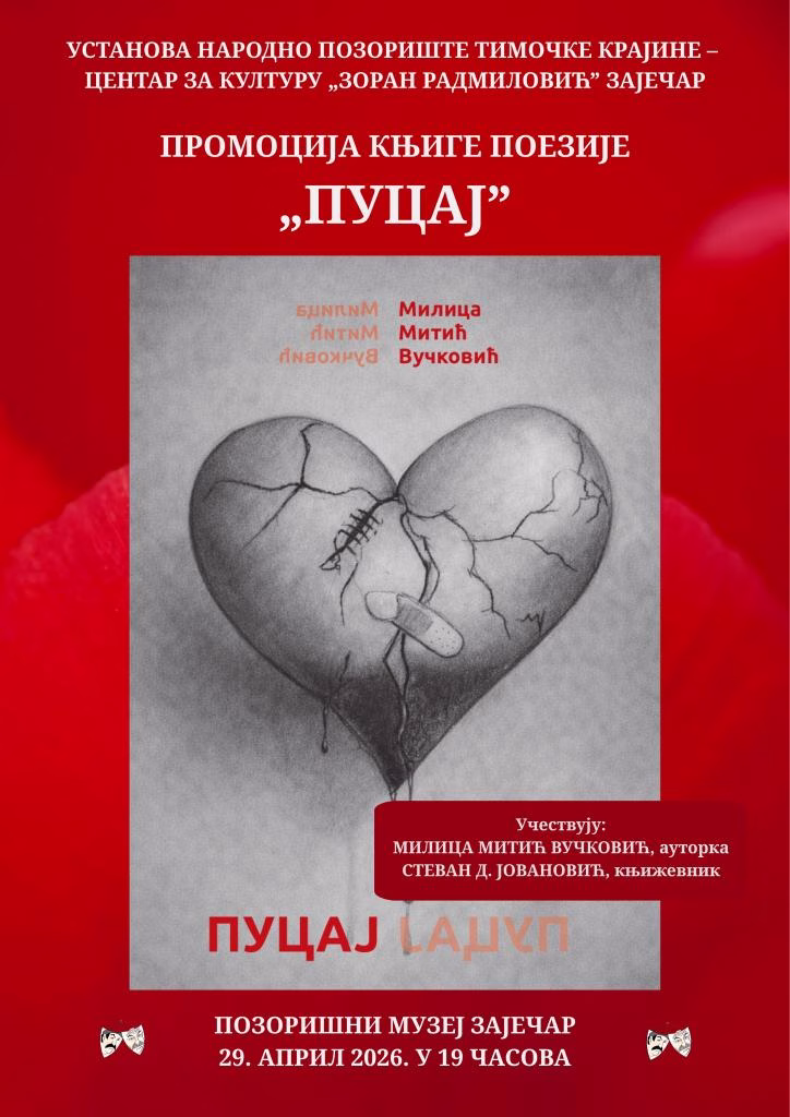 ZAJEČAR – Kulturni život Zaječara u sredu, 29. aprila, biće u znaku pisane reči. U prostoru Pozorišnog muzeja, sa početkom u 19 časova, održaće se svečana promocija zbirke poezije „Pucaj“, autorke Milice Mitić Vučković.