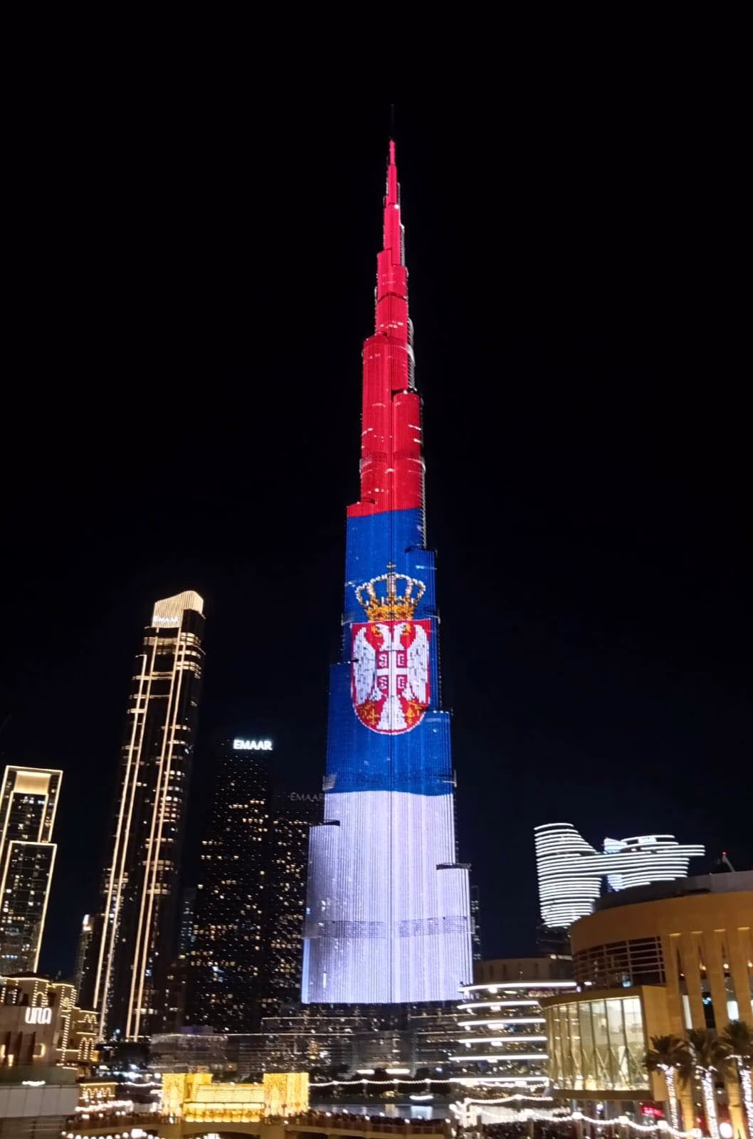 Povodom Dana državnosti Srbije, čuvena Burdž Kalifa u Dubaiju bila je osvetljena u bojama srpske zastave. Fotografije je objavio predsednik Srbije Aleksandar Vučić, ističući zahvalnost prijateljima iz Ujedinjenih Arapskih Emirata.