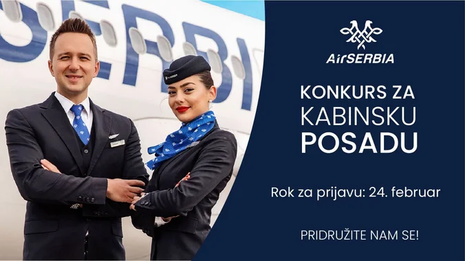 Zainteresovani za rad u timu kabinskog osoblja Er Srbije, prijavu mogu brzo i jednostavno podneti putem veb-sajta kompanije www.airserbia.com, najkasnije do 24. februara 2023. godine.