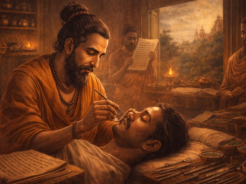 Dok je medicina u mnogim delovima sveta tek tražila sistem, u staroj Indiji su se već zapisivale metode koje liče na pravu školu prakse. Sušruta, lekar čije se ime vezuje za delo “Sušruta-samhita”, često se smešta oko 6. veka pre nove ere. U tom tekstu opisuju se obuka, higijena, instrumenti i tehnike koje pokazuju iznenađujuću preciznost za tako ranu epohu.