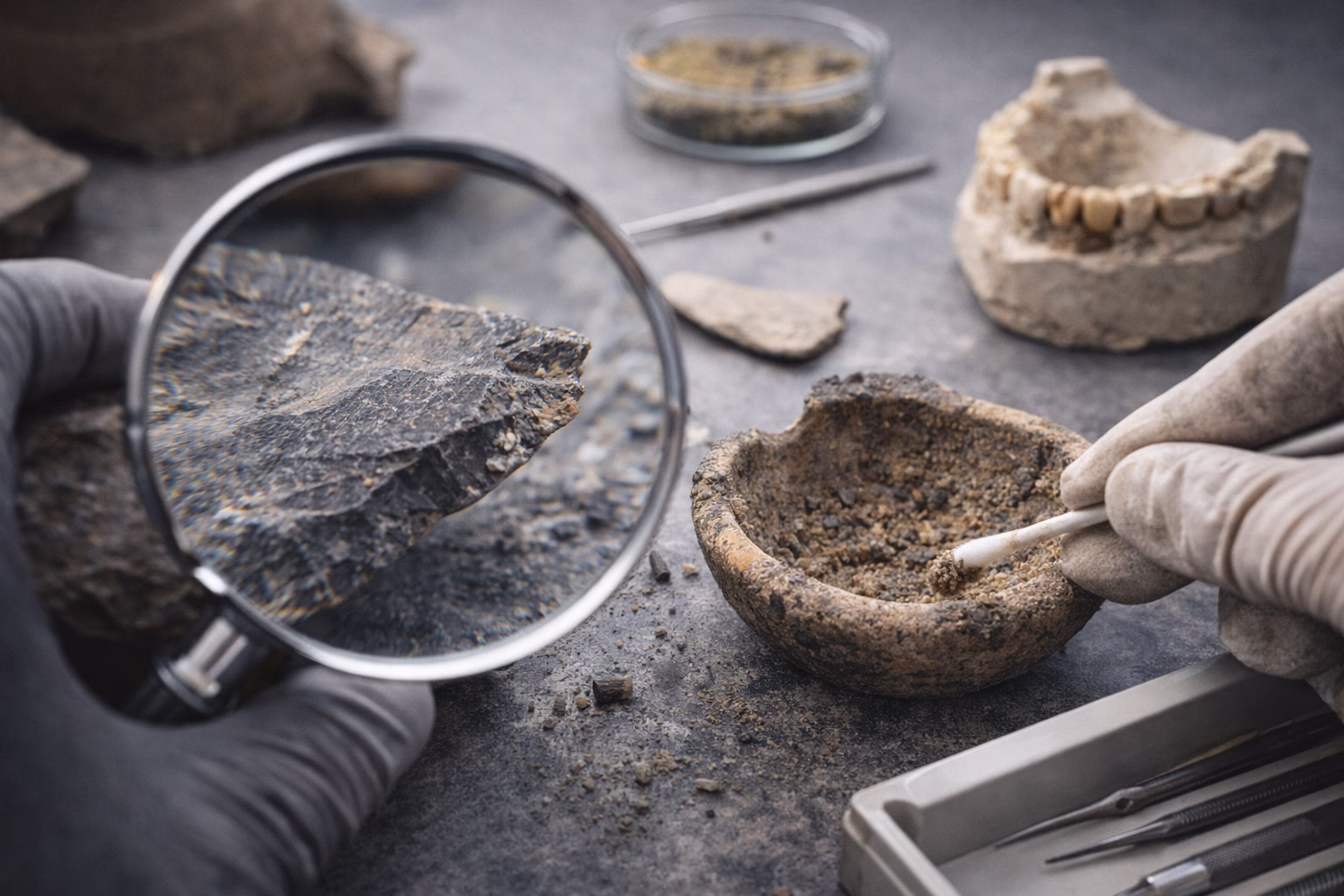 Još jedan „tihi svedok“ je zubni kamenac (dental calculus). Istraživanja u biomedicini i arheologiji pokazuju da on može čuvati proteine i DNK mikrotragova hrane i okruženja, pa se nekadašnji jelovnik bukvalno čita iz sloja koji niko ne bi nazvao dragocenim.