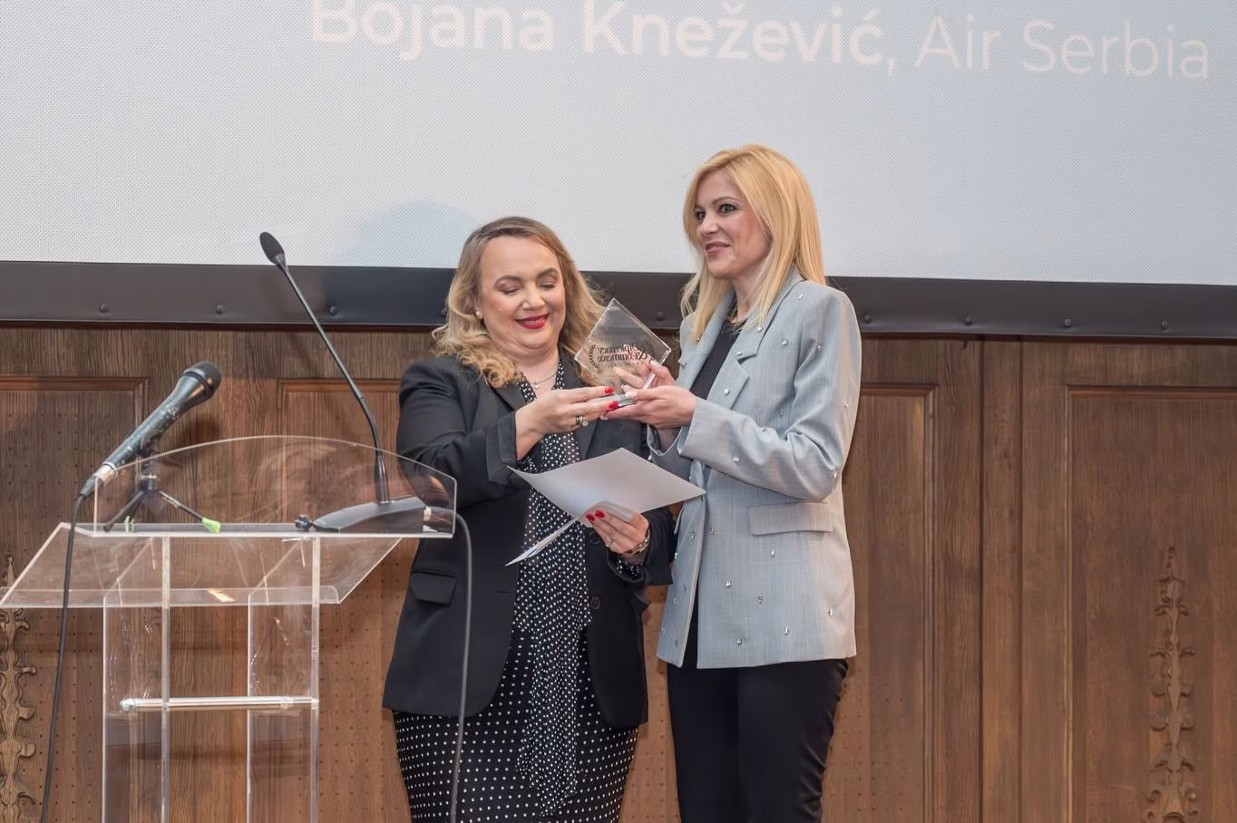 Nagradu su primili Bojana Knežević ispred kompanije Air Serbia i predstavnici organizacije „Dečje srce“, dok je priznanje uručila Jelena Medaković, državna sekretarka za kulturu Grada Beograda.