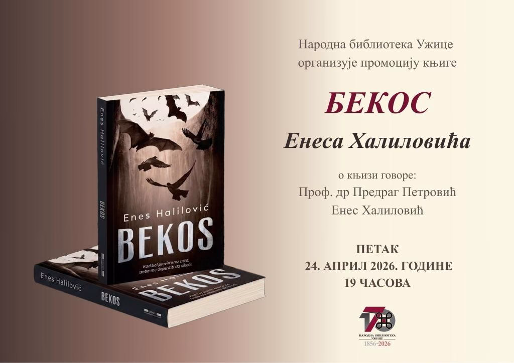 UŽICE – Narodna biblioteka Užice biće u petak, 24. aprila 2026. godine, domaćin promocije najnovijeg romana Enesa Halilovića pod nazivom „Bekos”. Književni susret sa jednim od najznačajnijih savremenih stvaralaca održaće se u prostoru Čitališta sa početkom u 19.00 č.