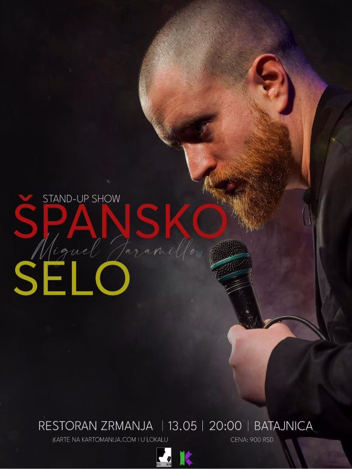 BATAJNICA – U restoranu Zrmanja u Batajnici, u sredu, 13. maja 2026. godine, sa početkom u 20.00 č, biće održan stand up nastup pod nazivom Špansko selo. Glavni akter večeri je Miguel Jaramillo, Španac iz Sevilje koji je, nakon što je oženio Kruševljanku, odlučio da svoj život nastavi u Srbiji.
