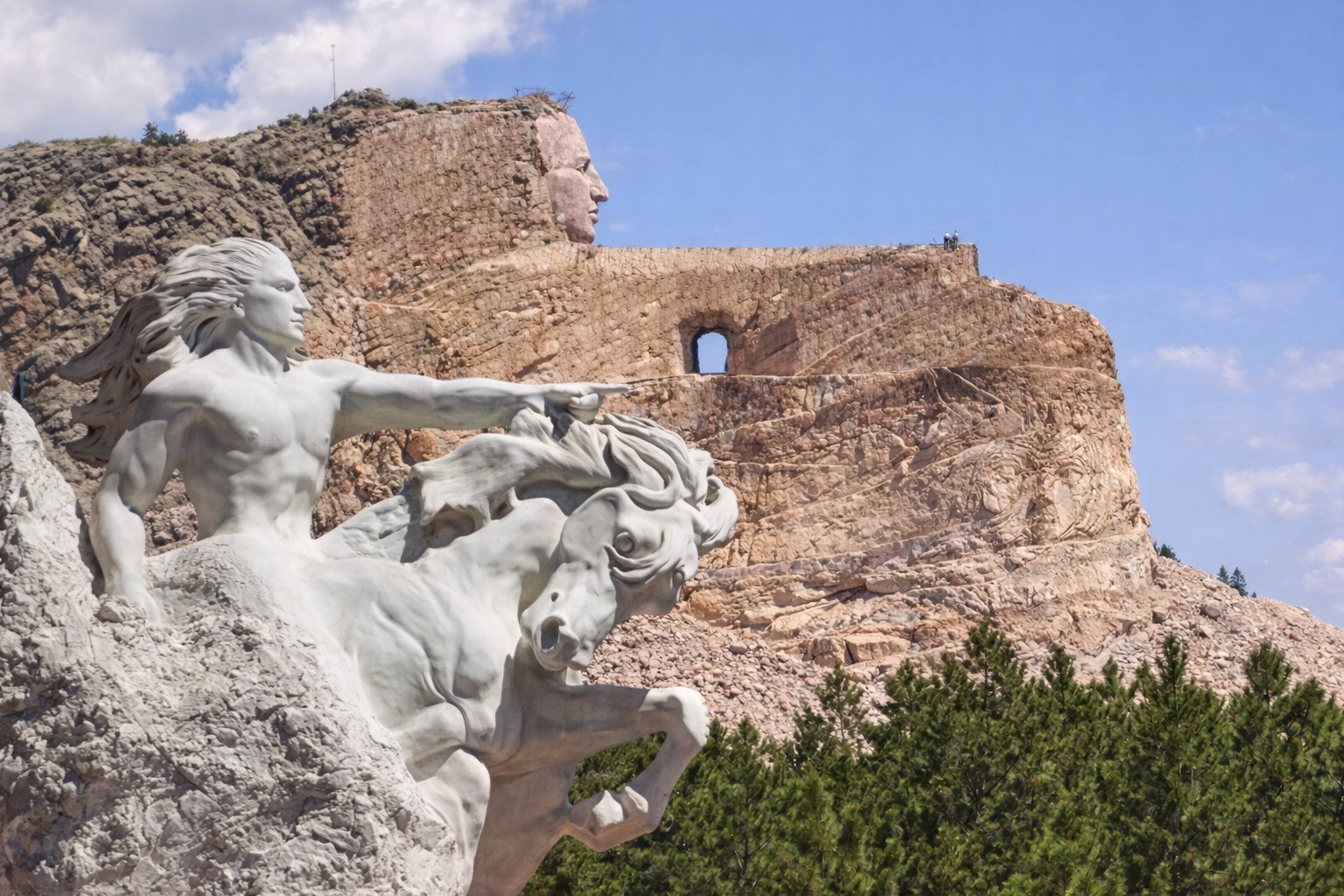 U Južnoj Dakoti, među borovima Crnih brda, vazduh miriše na smolu i prašinu. Put se penje mirno, kao da vas namerno usporava, i baš tada, bez velike najave, pojavi se planina koja nije samo planina. Pred vama se otvara ogromna stena u kojoj se polako rađa lik Ludog Konja – ratnika na konju, izrezbarenog u samoj utrobi kamena. Nema tu one muzejske distance: osećate se sitno, ali ne poniženo, već nekako pravilno postavljeno u odnosu na vreme.