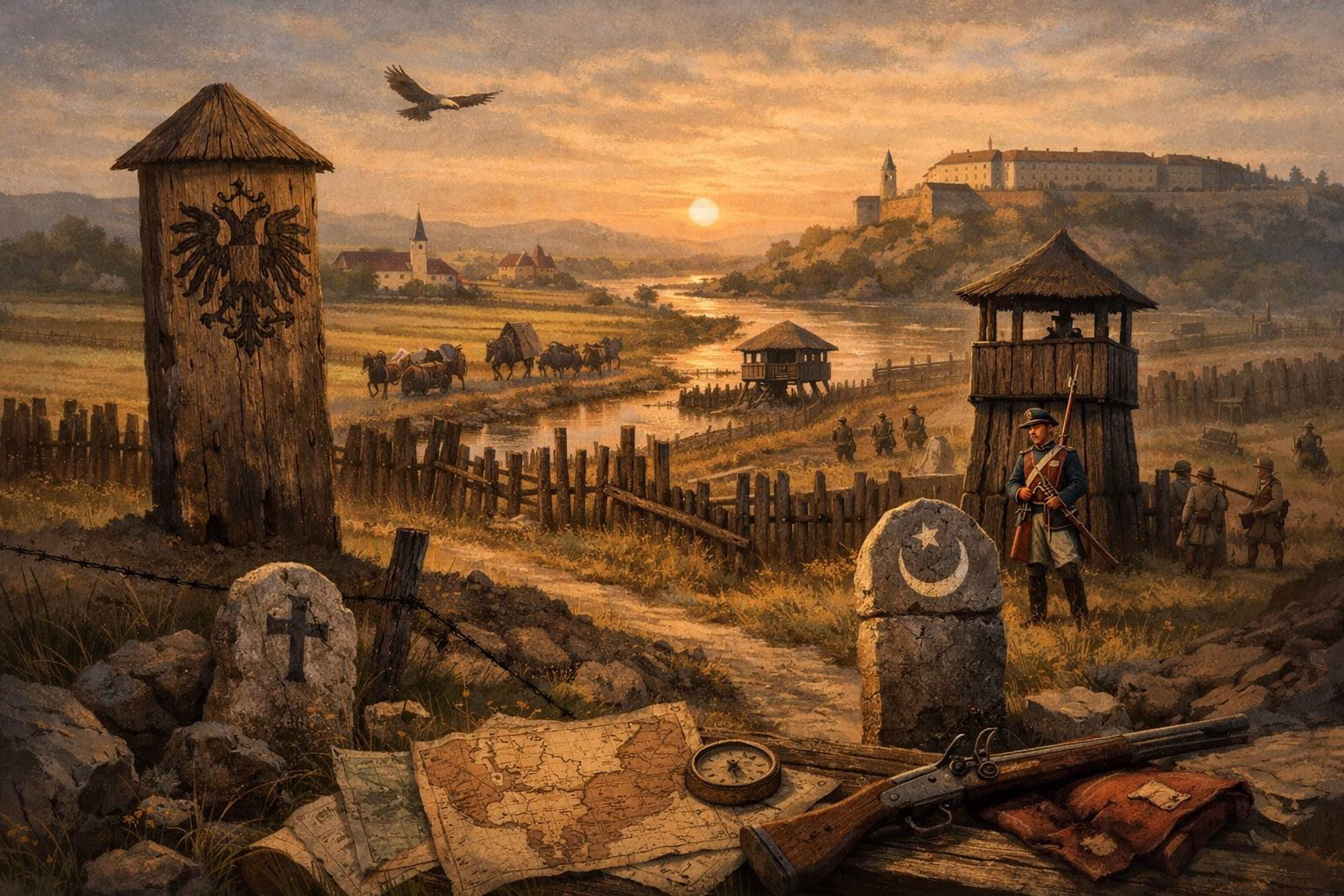 Zato je granica u Vojvodini menjala život mnogo dublje nego što to pokazuje školska karta. U vojnoj zoni ona je određivala ko mora u službu i pod kakvim pravilima živi. Uređena Vojna krajina nije bila samo pojas prema Osmanlijama nego čitav režim: svi sposobni muškarci bili su obavezni na vojnu službu, zemlju su držali uz dužnost da njome hrane i sebe i vojsku, a vlast je zadirala duboko u svakodnevicu. Uz samu granicu postojao je i sanitarni kordon, uspostavljen 1709, sa kontrolnim punktovima i obaveznim karantinom za ljude i robu. Drugim rečima, međa je određivala ne samo gde počinje druga država nego i koliko dana čekaš, kojim putem smeš da prođeš, šta nosiš na pijacu i pod čijim nadzorom živiš. Tu se najbolje vidi zašto je u Vojvodini granica bila način života, a ne samo diplomatski sporazum.