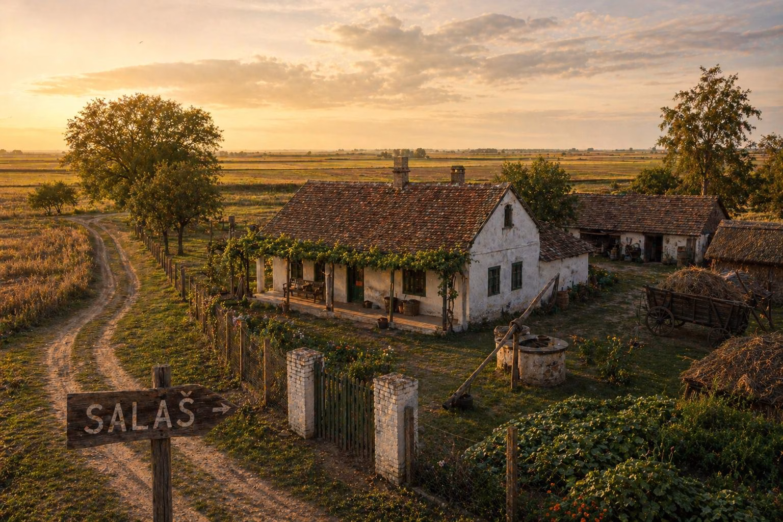 Iza dvoraca, kaštela i velikih vlastelinskih kuća, iza parkova i aleja koje su nekada govorile jezikom moći, Vojvodina čuva i jedan tiši, prisniji pejzaž. To je svet otvorene zemlje, bez parade i bez monumentalnosti, ali sa sopstvenim redom, dostojanstvom i upornošću. U toj ravnici najintimnija mapa života nije uvek bila ispisana selima i varošima, nego rasutim tačkama između njih: salašima, pustarama, majurima, ekonomijama, zaseocima i usamljenim gazdinstvima. Ako su dvorci pokazivali kako se u ravnici živelo odozgo, salaši su otkrivali kako se u njoj živelo iznutra — iz zemlje, iz rada, iz svakodnevnog dogovora sa vetrom, bunarom i daljinom.