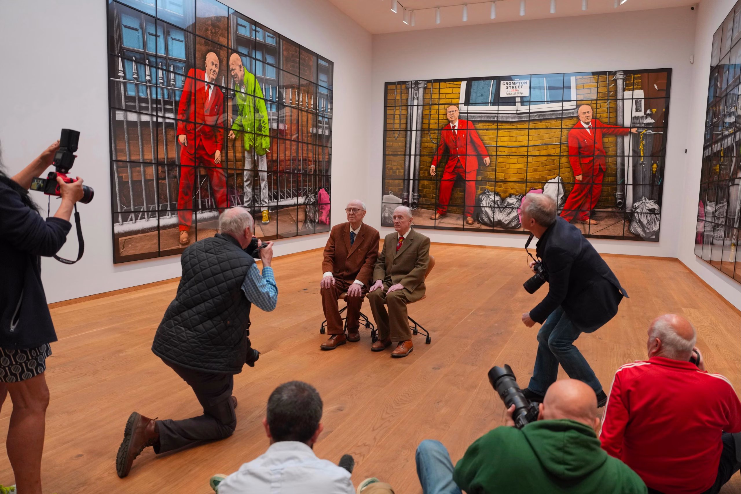 Umetnici, prepoznatljivi po svom jedinstvenom stilu i višedecenijskom delovanju kao „žive skulpture”, pozirali su pored svojih monumentalnih radova koji istražuju kompleksne teme ljudskog postojanja, urbanog života i socijalnih kontrasta. Nova postavka donosi prepoznatljivu estetiku jarkih boja i provokativnih kompozicija, kojom tandem nastavlja da pomera granice savremenog vizuelnog izraza.
