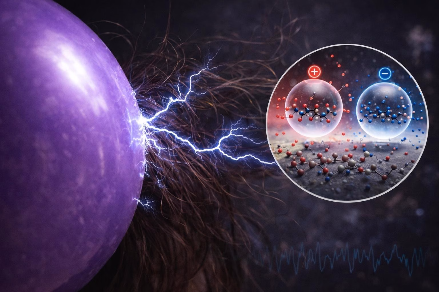 Statički elektricitet je jedna od onih pojava koje svi poznaju, a retko ko zaista razume. Balon na kosi, sitan udar pri dodiru, prašina koja se ponaša čudno — sve to deluje poznato, ali je iza kulisa ostajalo mnogo nerešenih pitanja. Posebno je naučnike dugo zbunjivalo kako dva ista materijala mogu da razmene naelektrisanje, iako teorijski ne bi trebalo. Sada nova studija nudi elegantan odgovor: važnu ulogu imaju molekuli bogati ugljenikom iz vazduha, koji se talože na površini materijala i menjaju način na koji se elektroni ponašaju pri kontaktu.